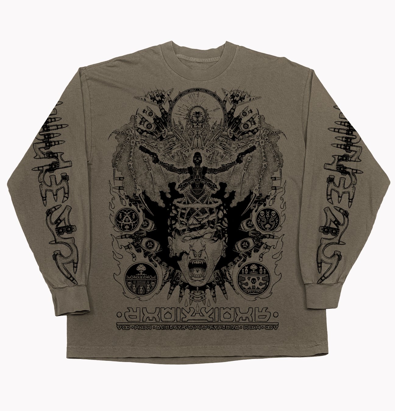 Silkscreen-printed on 100% heavy cotton, garment dyed long sleeves.